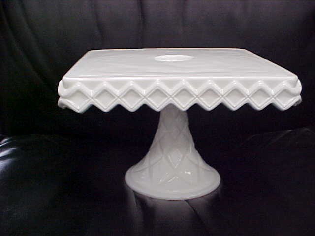 BEST VINTAGE SQUARE MILK GLASS PEDESTAL CAKE STAND ART