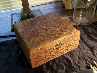Title (ebay affiliate link): Old Woodburned Wood Box With Padded Lining and Holly Berries