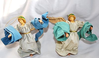 2 VINTAGE cartapesta paper mache 6 1/2" ANGEL Christmas Ornament