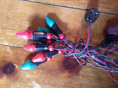 Vtg Christmas C7 LIGHTS NOMA GE BULBS RED WOOD BALL BEAD RARE RED GREEN RARE