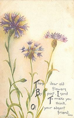Title (ebay affiliate link): Artist MES~Purple Flowers Sent to Make You Think of Absent Friend~1912 Sandford