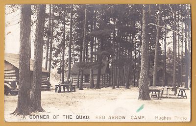 Title (ebay affiliate link): Woodruff Wisconsin WI Red Arrow Camp Boys Trout Lake Log Cabin Real Photo 1