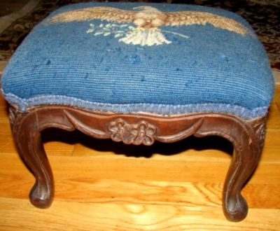 Title (ebay affiliate link): Antique CARVED Needlepoint EAGLE Black Walnut STOOL~NR!