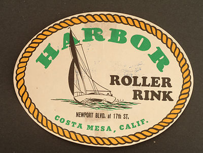 VINTAGE ROLLER SKATING LABEL HARBOR RINK COSTA MESA CA