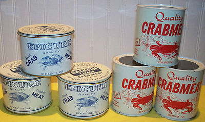 Title (ebay affiliate link): 6 CRABMEAT TIN CANS 1 LB QUALITY OWENS BLAKE VA EPICURE CAMBRIDGE MD NOT OYSTER