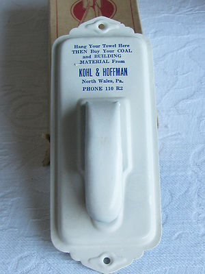 VINTAGE 1940'S ERICKSON METAL TOWEL HOLDER IN ORIG BOX COAL ADVERTIS N WALES PA