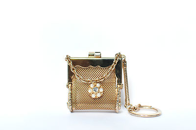 Title (ebay affiliate link): VINTAGE MESH COIN PURSE KEYCHAIN - rhinestone and pearls