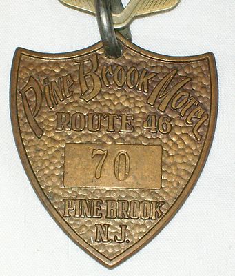 Title (ebay affiliate link): Vintage Pine Brook Motel Route 46 New Jersey Room 70 Bronze Shield Keychain Fob