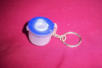 Vintage TUPPERWARE MIX N STORE Keychain ~ Blue Lid ~ Rare
