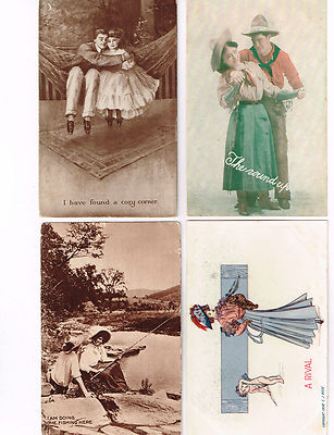 Title (ebay affiliate link): 4 Card Lot, Comic-Romance, Cupid & Lady, Fishing, Cowboy-Cowgirl Love!!