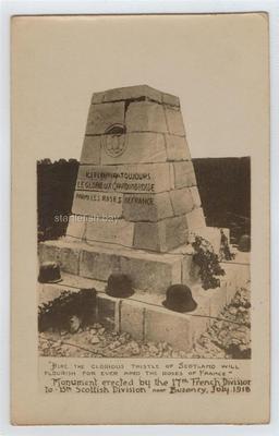 Postcard 15th SCOTTISH DIVISION Monument BUZANRY July 1918 3rd Battle of AISNE
