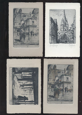 8 old UK engraved postcards, Oxford etc,Fine Art Studio London,engravings