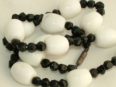 Title (ebay affiliate link): Antique French Glass Jet Chunky White Milk Glass Bohemia Czech Beaded Necklace