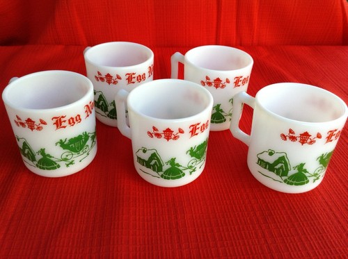 Title (ebay affiliate link): 5 Vintage Hazel Atlas EGG NOG white Milk Glass Mugs, Colonial Motif