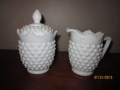 Title (ebay affiliate link): vintage Fenton white milk glass hobnail covered sugar & creamer set