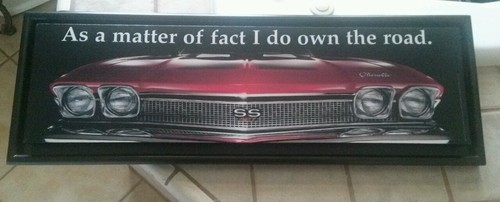 Title (ebay affiliate link): Chevrolet Chevelle. 68 Canvas Sign. As a matter of fact I do own the road.