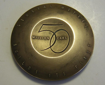 VINTAGE 1908-54 GENERAL MOTORS GM 50 MILLION CAR BRONZE MEDALLION PAPER WEIGHT