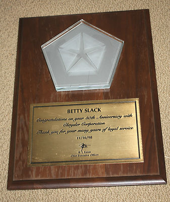 Title (ebay affiliate link): 1998 CHRYSLER CORPORATION 50th ANNIVERSARY EMPLOYEE PLAQUE! NR!