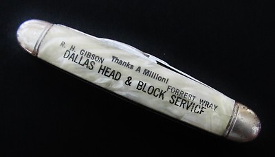 VINTAGE ADVERTISING FOLDING POCKET PEN POCKET KNIFE DALLAS HEAD & BLOCK