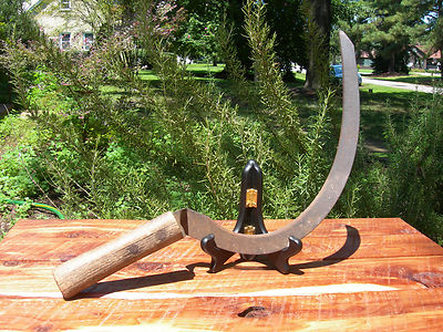 Title (ebay affiliate link): Antique Vintage Farm Garden Tool HAND SICKLE SCYTHE - GRIM REAPER