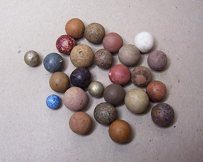 NICE MIXED LOT OF 25 ANTIQUE CLAY MARBLES