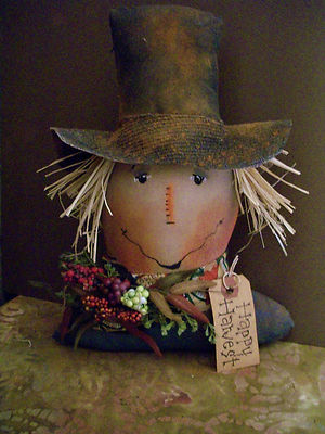 Primitive Scarecrow Head - Fall Doll - 11 x 8 in-