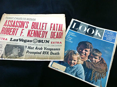 Title (ebay affiliate link): Robert Kennedy Assassination Newspaper- June 6, 1968 + RFK LOOK Mag- May 1963
