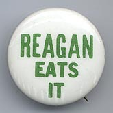 Title (ebay affiliate link): Vintage br "REAGAN EATS IT" br 1960s Protest Pin