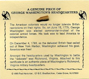 Title (ebay affiliate link): A Genuine Piece of George Washington's Richmond, Virginia Headquarters