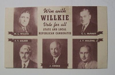 Wendell Willkie coattail ad card jugate campaign button poster political