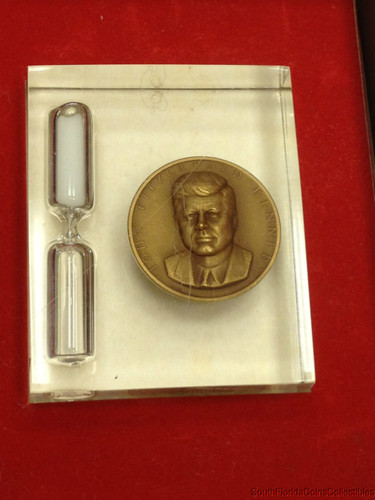 Title (ebay affiliate link): BRONZE JOHN F. KENNEDY PRESIDENTIAL MEDAL,HOUR GLASS AND PAPER WEIGHT