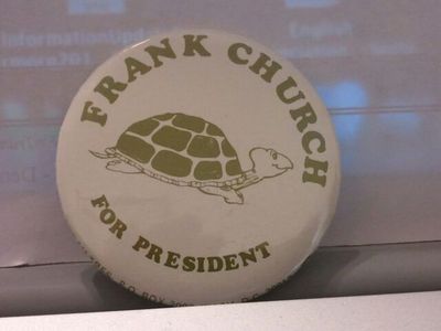 Title (ebay affiliate link): Frank Church for President pinback button, political, campaign, turtle 1 11/16"