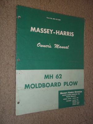 Title (ebay affiliate link): 1955 Massey-Harris "MH 62 Moldboard Plow" Owner's Manual Tractor
