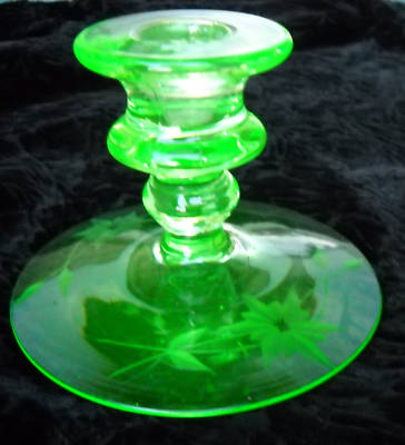 LOVELY ETCHED GREEN DEPRESSION GLASS CANDLE HOLDER