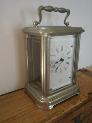 Title (ebay affiliate link): Antique, carrage clock, Pewter or Silver