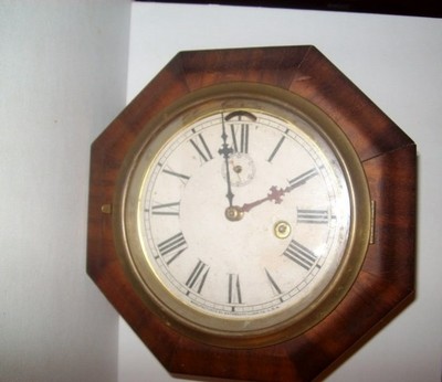ANTIQUE WATERBURY ONE DAY LEVER WALL CLOCK 6" OCTAGON WOOD