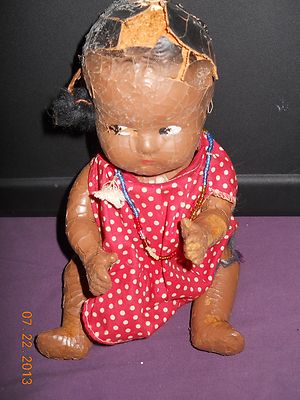 Title (ebay affiliate link): Antique Black Americana Topsy Baby Doll Composition Handpainted Face Limb Joints