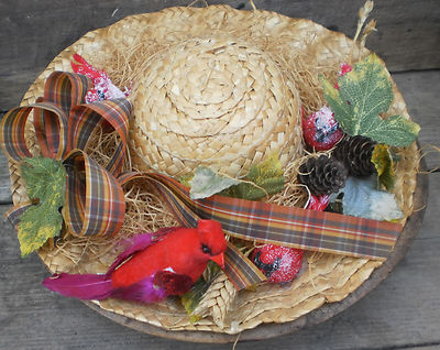 Title (ebay affiliate link): primitive hat shelf sitter door greeter spring bird cardinal straw
