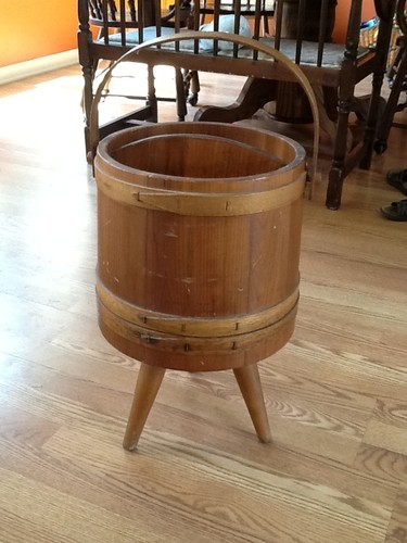Title (ebay affiliate link): Primitive vintage FIRKIN Shaker Large General Store Sugar Apples Leg Bucket~Sew~