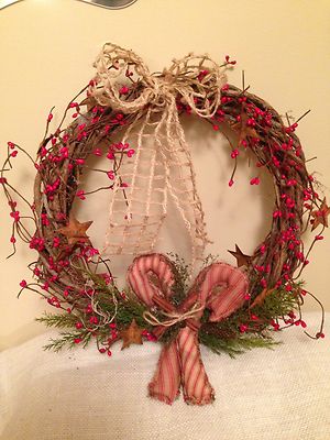 Title (ebay affiliate link): Adorable Primitive Christmas Grapevine Wreath with Pip Berries and Candy Cane