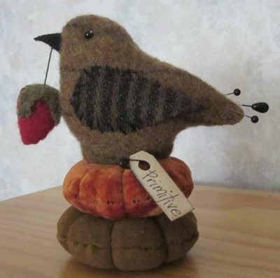 Title (ebay affiliate link): PRIMITIVE WOOL BIRD STRAWBERRY VELVET MAKE DO PIN CUSHION SEWING PFATT