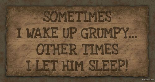 Title (ebay affiliate link): Primitive Wood funny sign SOMETIMES I WAKE UP GRUMPY Rustic Country Home Decor
