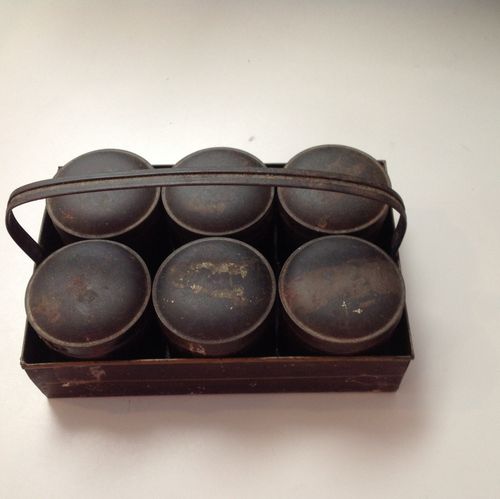 Title (ebay affiliate link): Antique Primitive w/6 Spice Tins In Handled Tray