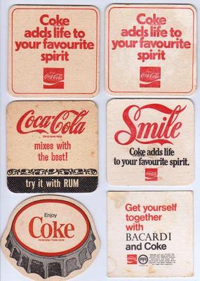 Six Vintage Coca-Cola & COKE and Mixes . Drink Coasters.