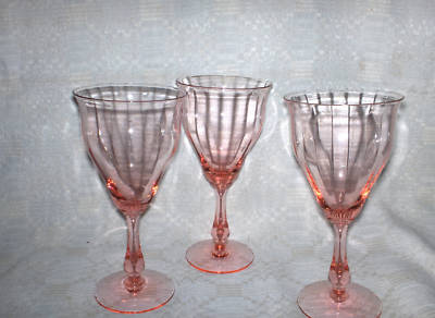 Title (ebay affiliate link): 3 Pink Depression Stem Goblet Glasss 7" tall-flared rim