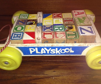 Title (ebay affiliate link): Vintage Playskool Wagon Alphabet Blocks Tinkertoy Pieces