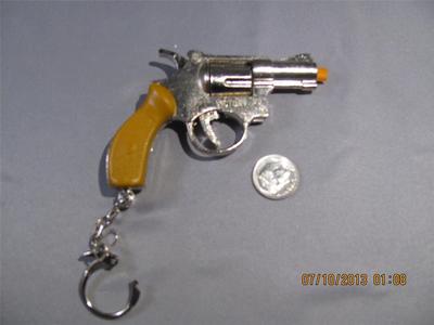 Title (ebay affiliate link): Cap Gun Keychain 38 Special Small Brown Handle Chrome Color