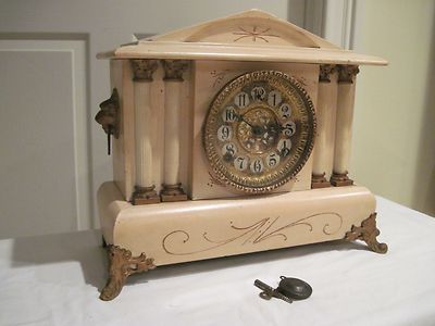 ANTIQUE GILBERT ENAMELED WHITE MANTEL CLOCK