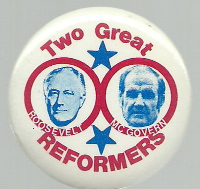 Title (ebay affiliate link): McGOVERN, FDR TWO GREAT REFORMERS 1972 POLITICAL CAMPAIGN PIN