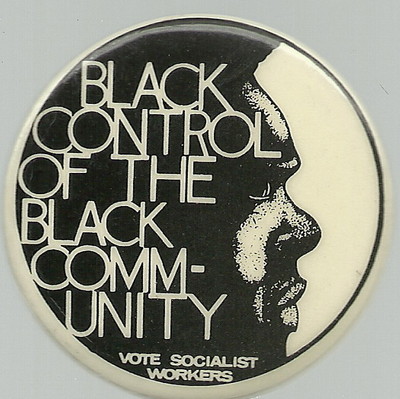 Title (ebay affiliate link): SOCIALIST WORKERS BLACK CONTROL OF BLACK COMMUNITY PIN